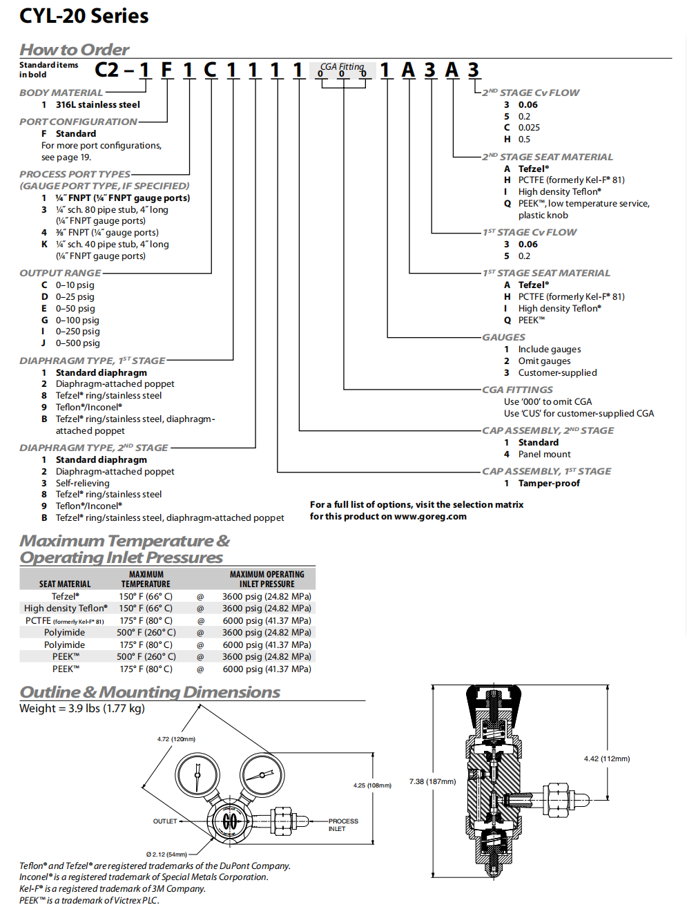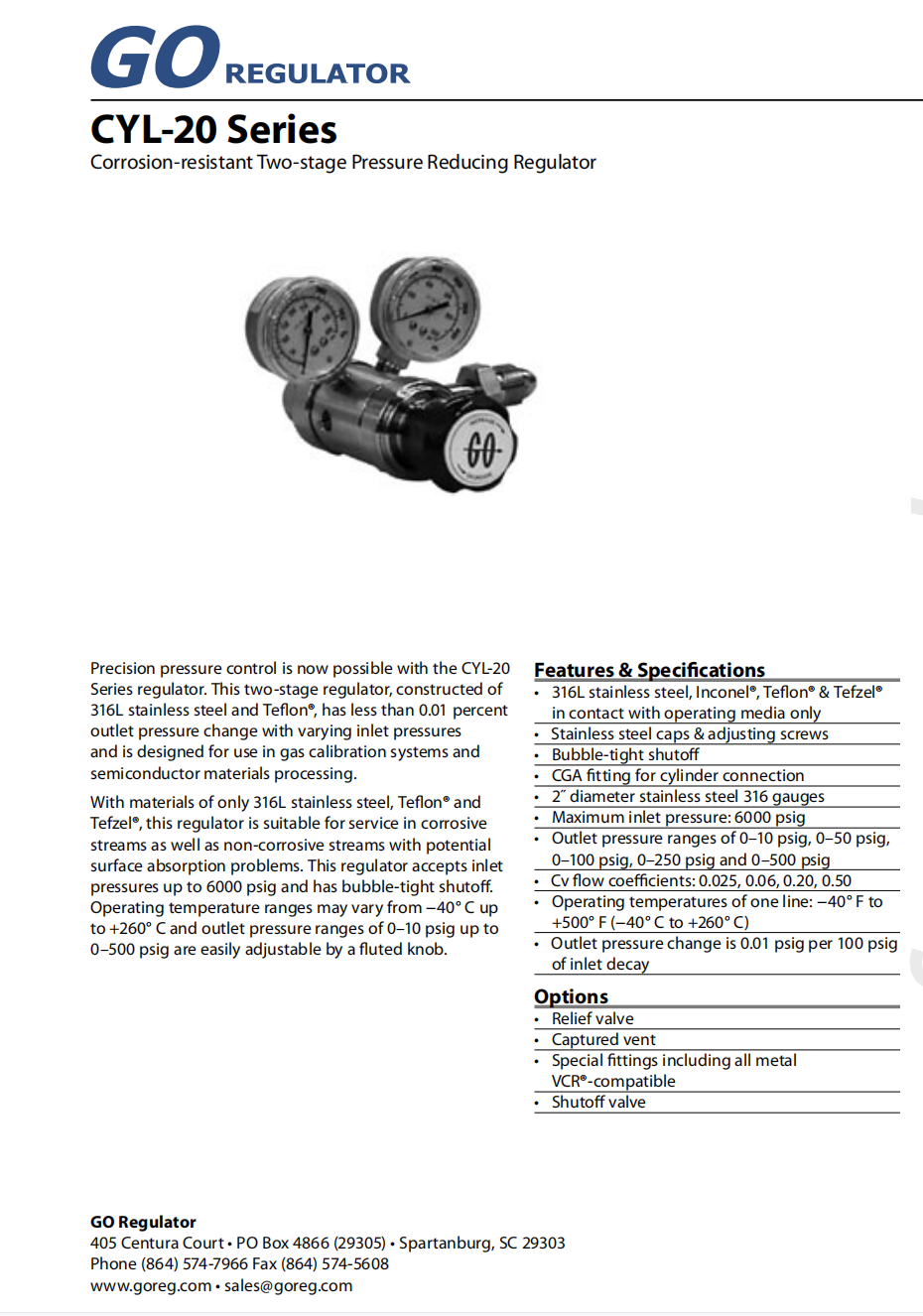 GO CYL-20 C2雙級減壓閥