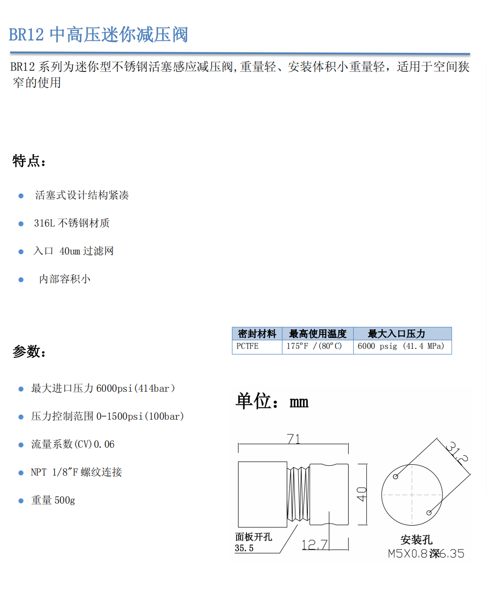 BR12中高壓迷你減壓閥(氣或液)